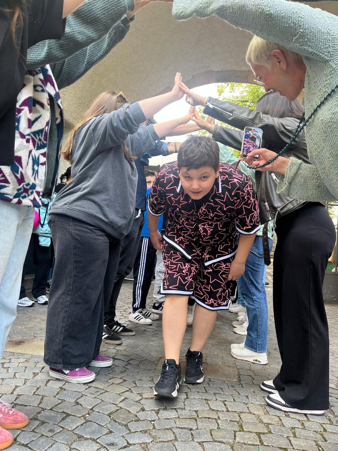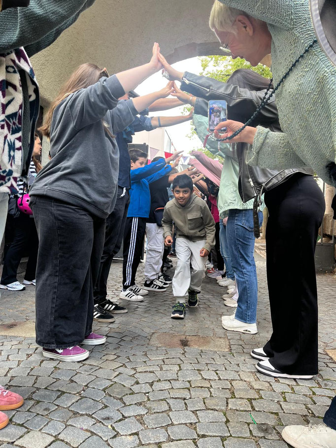 Traditionell wurden am letzten Schultag die Viertklässler von den anderen Klassen und der OGTS mit einem Spalier quer über den Pausenhof verabschiedet. Der Abschied war teilweise sehr tränenreich.